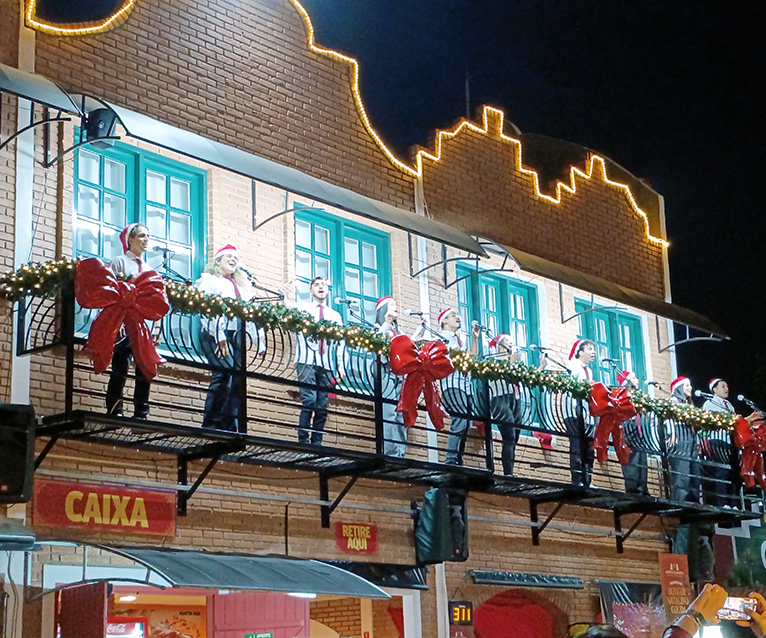 O Natal de Holambra by Expoflora, com programação intensa até 14 de dezembro de 2025, combina natureza, arte, luz e emoção, transformando o complexo do pavilhão das flores em um cenário vivo, que mistura afeto e o colorido intenso natalino | Leia mais... | Legendas (da esquerda para direita): Árvore de Natal, apresentação musical, decoração natalina, presépio e instalação na Mostra Jardins em Festa; e a Parada de Natal |