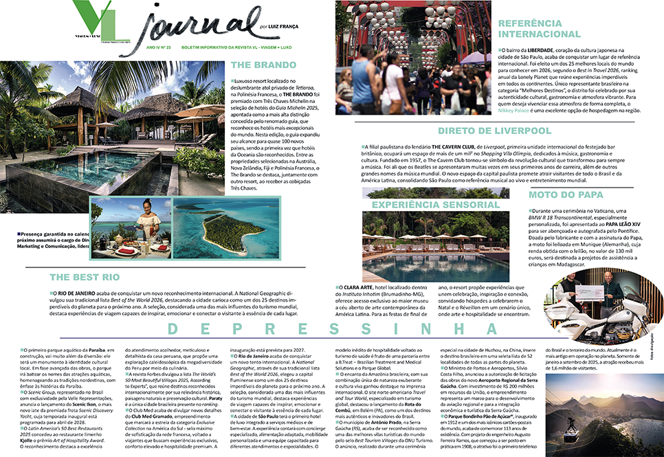 EDIÇÃO ESPECIAL VL CORPORATE A revista VL – Viagem + Luxo dedicará um capítulo especial sobre o fascinante mercado de viagens corporativas e de incentivos. Acesse AQUI nosso mídia kit e reserve seu espaço publicitário para participar da edição VL Corporate, aparecendo ao lado de grandes marcas que fazem parte do universo luxuoso da revista VL – Viagem + Luxo |