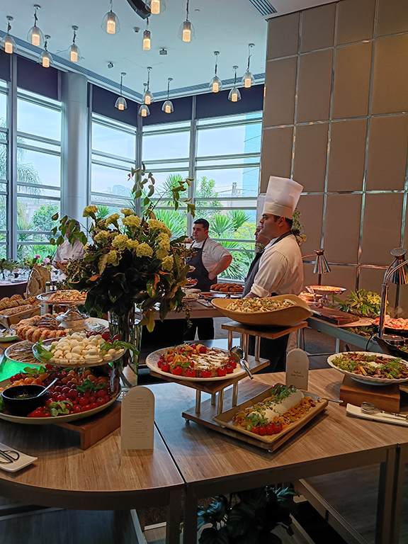 - Em um evento exclusivo, o Grand Hyatt São Paulo reuniu convidados e a imprensa especializada para apresentação do cardápio para as festas de final de ano no hotel. Para a noite de 24 de dezembro, a tradicional ceia apresenta um menu especial elaborado pela equipe de chefs do Hyatt, além de contar com a presença mágica do Papai Noel, que promete transformar o encontro ainda mais especial para as crianças. Se a ideia é optar pelo pacote de hospedagem, após uma noite de celebração, o Hyatt oferece quartos amplos e confortáveis, além de um café da manhã completo e variado.